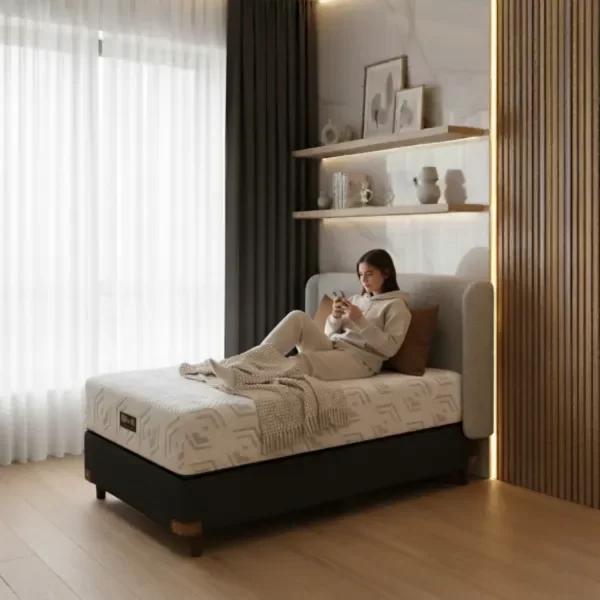 Perfecto para quienes buscan la última tecnología en descanso individual, combinando el soporte indeformable de la espuma de 35 kg/m³ con la adaptación inteligente del Memory Foam sobre una base sólida. El Conjunto Memory Flex ofrece una postura ergonómica perfecta, mayor altura para un acceso cómodo y una sensación de lujo envolvente, ideal para despertar renovado.