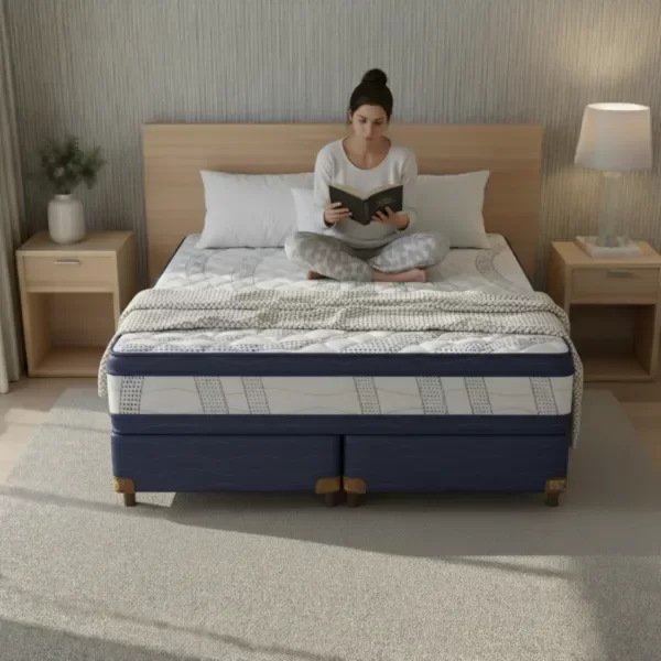 En esta medida, la base dividida es el socio estratégico de la durabilidad. Provee una columna de soporte central que impide que el colchón se curve, asegurando que la superficie del Doble Pillow se mantenga plana. Es ideal para quienes han tenido malas experiencias con colchones que se hunden en el medio, garantizando una rectitud postural absoluta.