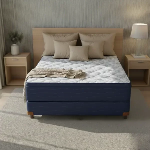 Perfecto para parejas que valoran la estética y el confort clásico, con el núcleo de resortes Bonnell y la acogida del Doble Pillow Europeo sobre un sommier tapizado. El Conjunto Onix con Euro Pillow ofrece una superficie estable, soporte para 90 kg por lado y una sensación de confort acogedor, ideal para disfrutar de una habitación vestida y elegante con un presupuesto inteligente.