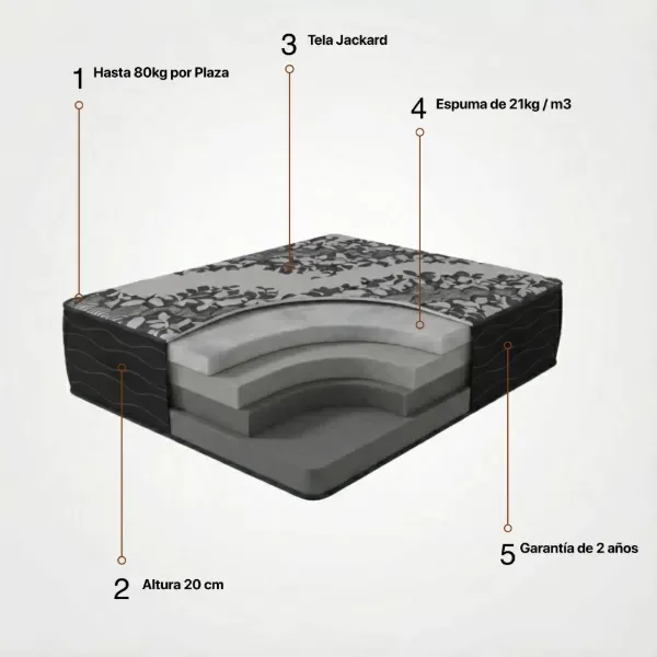 Perfecto para adolescentes en desarrollo o adultos jóvenes, con la acogida suave de la espuma de 21 kg/m³ y la resistencia clásica de la tela Jackard. El modelo Plus Suave ofrece adaptabilidad mejorada, un soporte confiable para hasta 80 kg y una sensación de confort mullido, ideal para quienes buscan un descanso relajado sin la rigidez de los colchones ortopédicos.