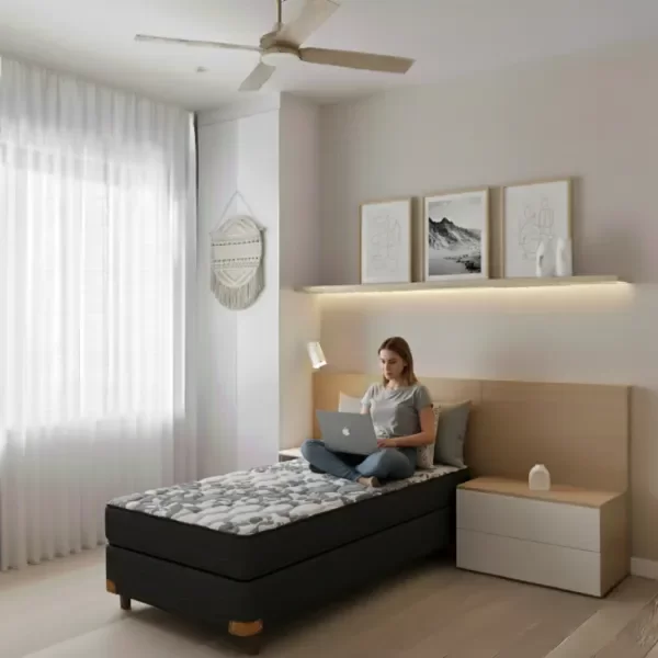 Perfecto para estudiantes o habitaciones juveniles, con el equilibrio justo de la espuma de 21 kg/m³ y una superficie agradable al tacto. El modelo Plus Suave ofrece una estructura flexible, mayor durabilidad frente al uso diario y una sensación de descanso liviano, ideal para relajarse y recargar energías con total comodidad.
