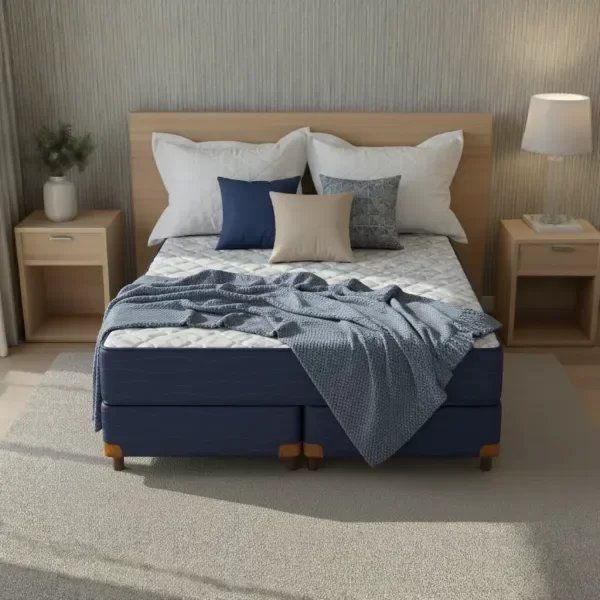 Perfecto para quienes exigen espacio y consistencia, con la estructura indeformable de la espuma de alta densidad (30 kg/m³) y una terminación robusta en Jackard. El modelo Zafiro ofrece estabilidad total, una superficie plana de borde a borde y una sensación de soporte continuo, ideal para un descanso profundo en un entorno espacioso